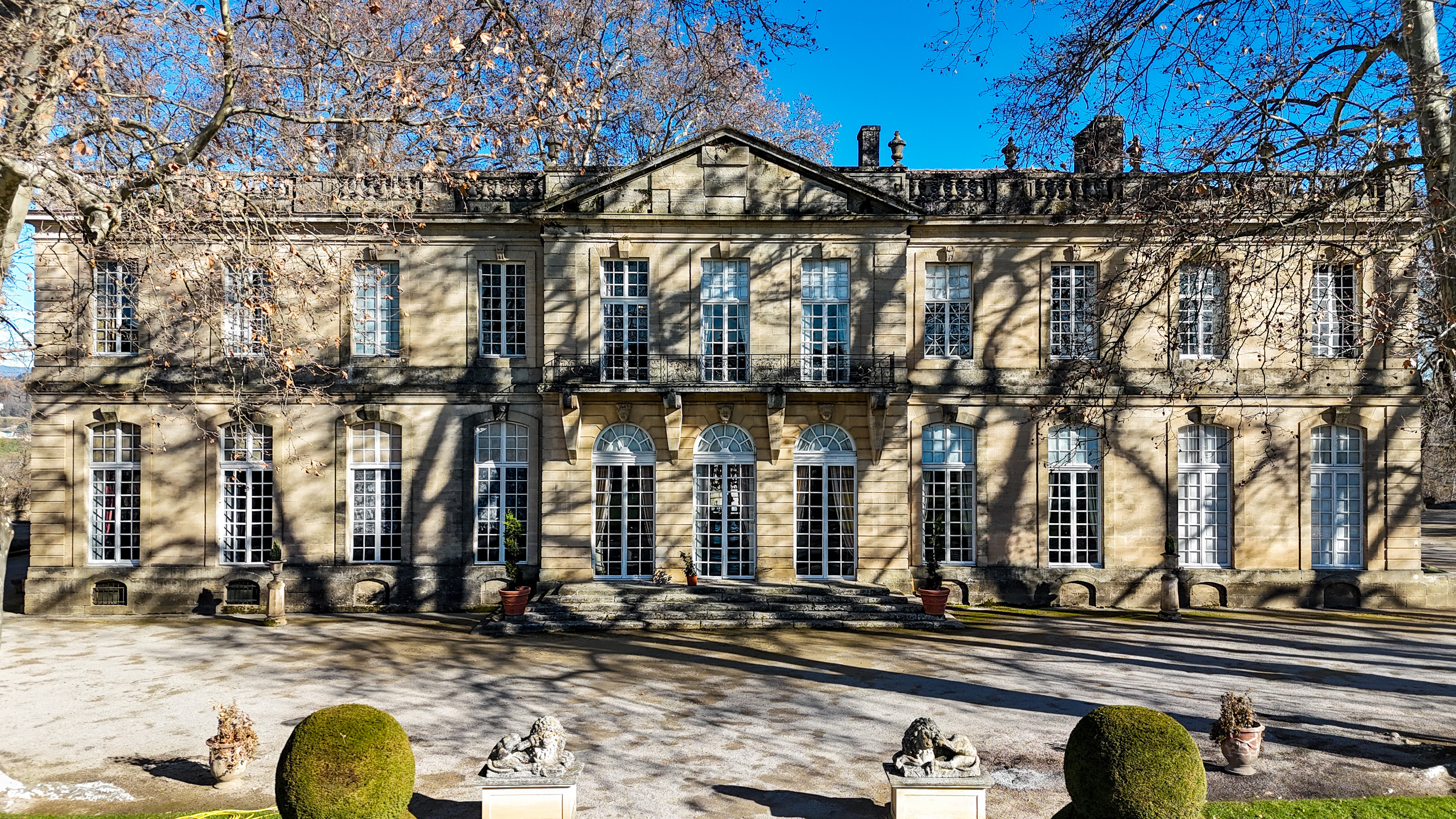 Dans un paysage sublime où la vue porte à plusieurs kilomètres, ce palais classique bâti vers 1720 illustre tout l'art de vivre à la française sous la Régence, digne du film « Que la fête commence ». La somptuosité architecturale de ce qui est le plus beau château XVIIIème de Provence n'a d'égale que l'effort extraordinaire qu'il nécessita en pleine dernière épidémie de peste en Europe, à Marseille de 1720 à 1722, alliée à des moyens colossaux, fruits de l'euphorie financière de la banque de John Law.