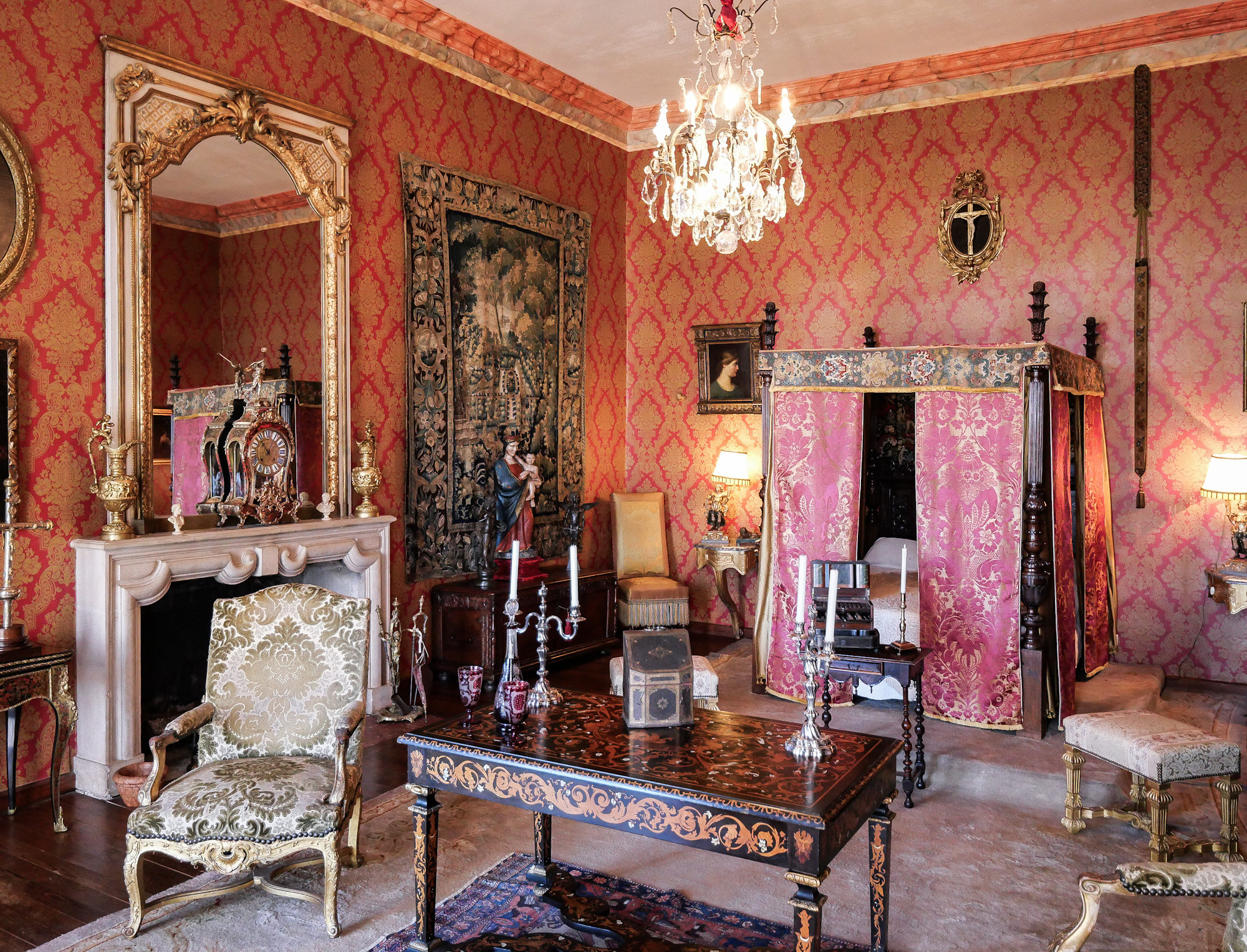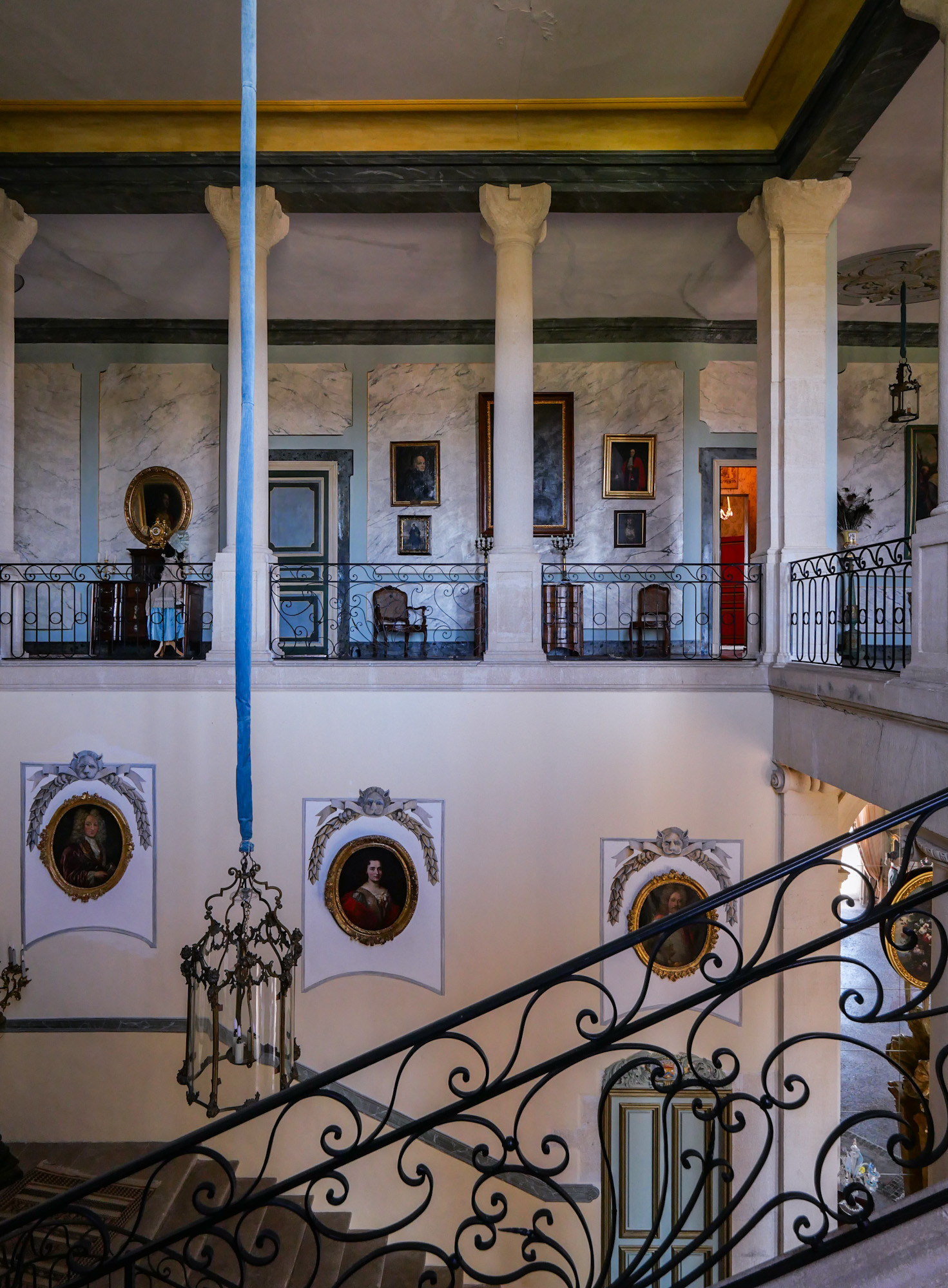 Au premier étage, une extraordinaire et très impressionnante galerie de 45 mètres de long vient longer le majestueux hall de colonnes ouvert sur l'escalier. 8 très belles chambres, certaines avec antichambres et cabinets, ornées de cheminées. Un billard-bibliothèque orné de très beaux papiers peints XIXème. Une chapelle.