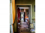 Un grand salon avec un escalier de service vers la cuisine.