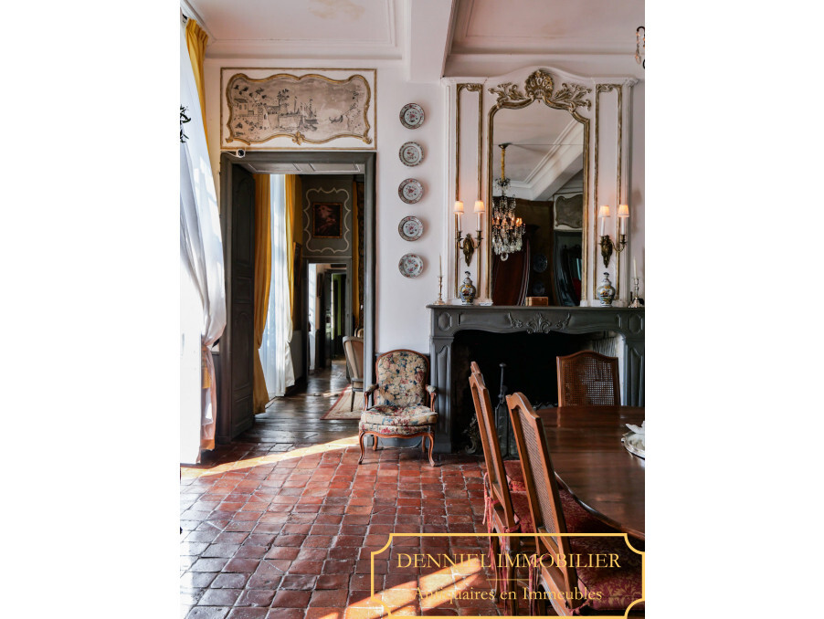 L'intérieur du château est typique de tout ce que le XVIIIème siècle Français peut offrir de raffinement et d'art de vivre, notamment à travers les 5 très beaux grands salons en enfilade ornés de leurs décors XVIIIème, planchers à larges lattes, tomettes, cheminées, trumeaux, parquet Versailles, boiseries, bas lambris.